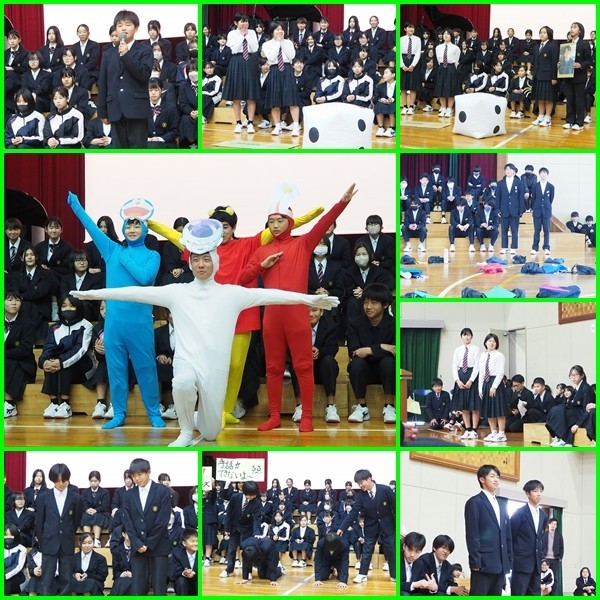 本日、午後から卒業生を送る会が行われました。1年生からは、感謝を伝える「劇」と「合唱」を披露しました。「劇」では、3年生に感謝を伝えながら、笑顔にすることができてとても良かったです。また、合唱も一人ひとり気持ちを込めて歌うことができたので、3年生に感謝が伝わったと思います。