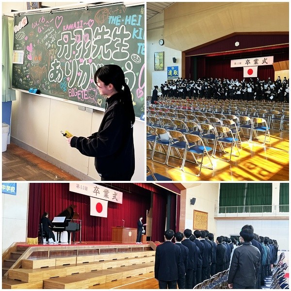 最後の学活では、各クラス、先生や仲間たちと1年を振り返っていました。みんなで一緒に過ごしてきた時間は本当にあっという間でしたね。でもその中には、かけがえない瞬間がたくさん詰まっています。明日の式典では、これまでの歩みを振り返りながら、HEROesみんなで中学校の卒業、新たな舞台への門出への決意をしよう!みんなの本気・強い気持ちを感じながら、みんなの門出を祝いたいと思います。今日はゆっくり体を休めて、明日に備えましょう。