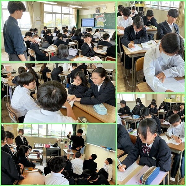 本日の写真は、1時間目の授業風景と5時間目の学級訓決めの様子です。
