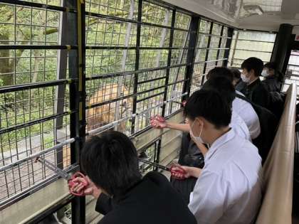 肉食のライオンに餌をあげました。網越しでもドキドキします。