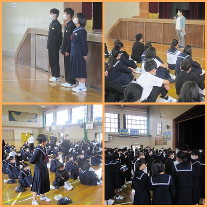 朝の時間に、自然教室に向けてのミニ集会を行いました。