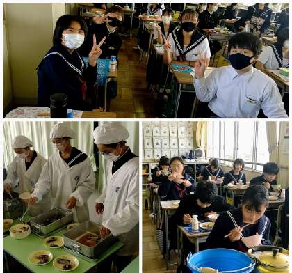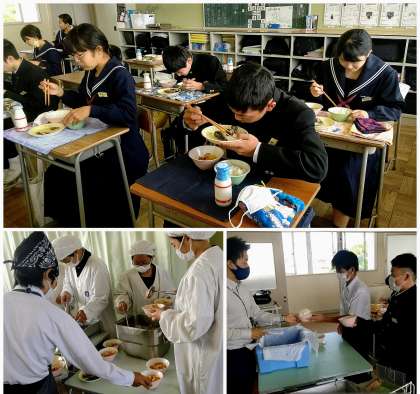 本日は給食の様子です!どのクラスも12時45分までに配膳室に取りに来ることが出来ましたね!明日も全クラス配膳室に早く取りに来れるように手を洗ったら、布巾をすぐに準備して整列することを心掛けていきましょう!