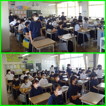 今日の朝学の時間に陸上選手激励会が行われました。