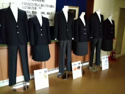 次年度からの新制服の仕様決定に向け、最終の段階に入ってきました。これまでにいただいた意見を踏まえ、3タイプの見本ができました!3タイプから1つに決定するための最終アンケートを、明日、お子様を通じて依頼させていただきます。ご協力をお願いします。また、同時に明日から本校と中央公民館(火曜休館)で見本の展示を行います。実物を見てからアンケートを実施したいという方は、ぜひご覧ください。