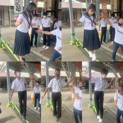 スラックライン(レール)(綱渡りのようなもの)の普及活動をしています。