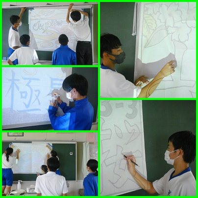 昨日、今日のST後に学級旗の下書きをしました。