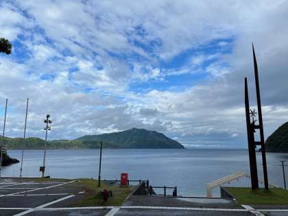食事中、ふと外を見ると、雲の切れ間から青空がのぞいています。