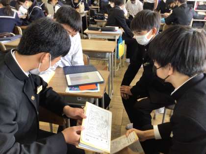 1時間目の学活、ディズニー班で集まり、当日の動きを考えました。行きたいアトラクション、食事場所、お土産を買うタイミング等話し合いました。