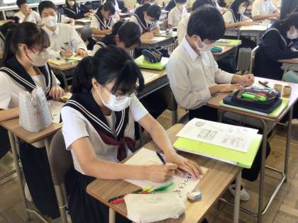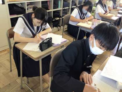 3の1「国語」 テーマに沿って自論を展開する作文を書いていました。