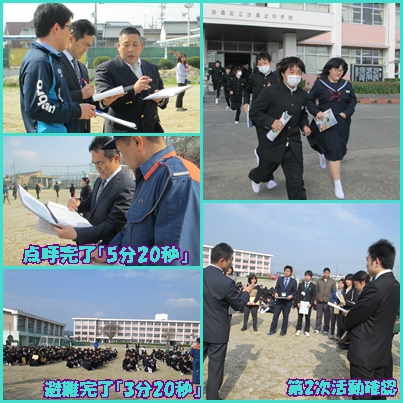生徒の真剣な避難ができ、先生方の責任確認もできました。