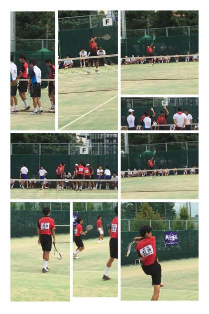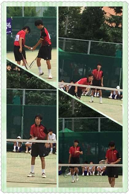 試合がはじまりました!最初のペアが、江南西部中学校と、闘っています。