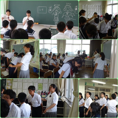 正しい挨拶や言葉遣い、お辞儀の練習をして意識を高めたり、報告の「ホウレンソウ」や「5W1H」を学んだりしました。生徒の感想からは、職場体験学習や今後に生かしていきたいという声がたくさん聞かれ、有意義な1時間となったことがとても伝わってきまいた。