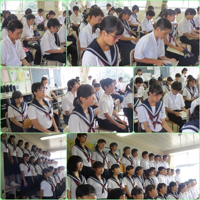 最後に、お礼として「HEIWAの鐘」を合唱しましたが、合唱を聴きながら一緒に口ずさんだり中学校時代を懐かしんだりする高校生の姿も見受けられ、嬉しくなりました。