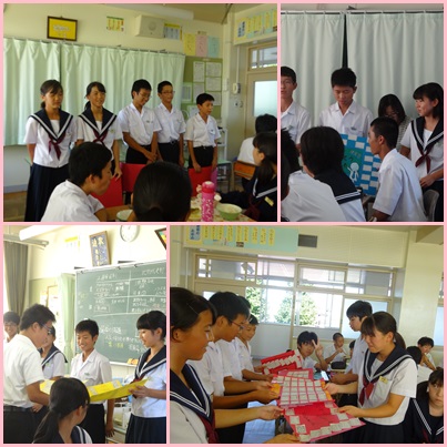 給食の時間に、1,2年生のみなさんが、3年生に体育大会での感謝の気持ちを伝えに来てくれました。