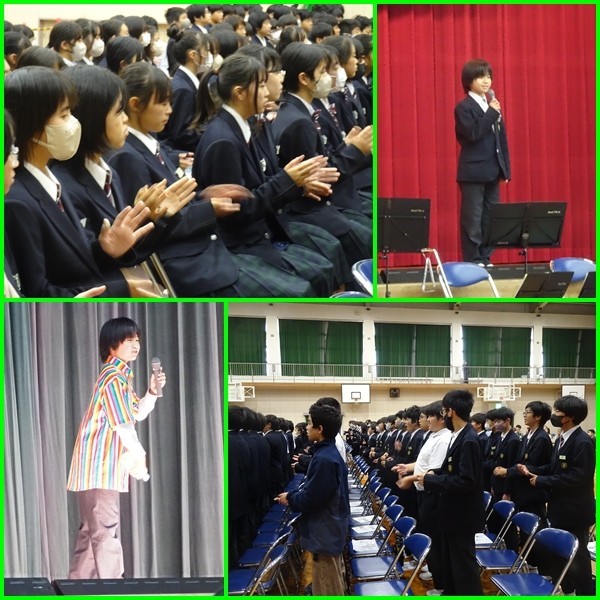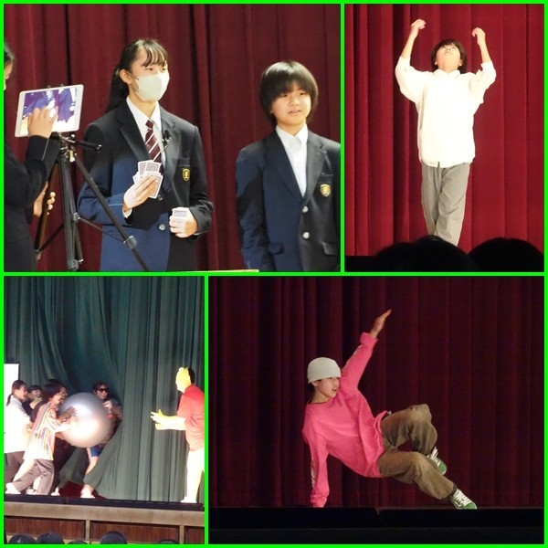 待ちに待った進取祭が今日から始まりました。今日は、吹奏楽部の発表と有志ステージがありました。1年生にとって初めての進取祭でしたが、みんなとても盛り上がって楽しむことができました。有志ステージでは、3グループの1年生が堂々とした姿で発表していました。吹奏楽部の子たちもとても素晴らしい演奏だったと思います。明日は音楽鑑賞会、明後日はFKC音楽祭があります。残り2日間も楽しんでいきましょう。