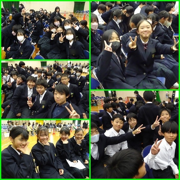 1時間目の学活の時間に、上級学校訪問の直前集会をしました。学年長・副学年長や生徒指導の先生、担当の先生、学年主任の先生から「ルールやマナーを守ろう」「交通安全に気を付けよう」「あいさつをしっかりしよう」「時間を守ろう」などの話がありました。みんなでたくさん学んで、楽しむことができる上級学校訪問にしていきましょう。