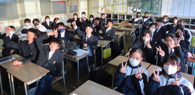 福祉分野で活躍されている方をお招きし、「今の職業に就いたきっかけ」「大変なことややりがい」「中学校生活とのつながり」などについてお話を聞きました。1年生の今はまだ具体的にどんな夢があるか決まっている人はまれかもしれませんが、「好きなことをとことんやること(夢が見つかるかもしれない)」「勉強をすること(道が広がる)」を一生懸命にやろうというメッセージをいただいたりしました。進路決定や職場体験はまだ先ですが、今日をきっかけに少しずつ行動にうつしていけるといいですね。講師の先生方、寒い中来校いただきありがとうございました。