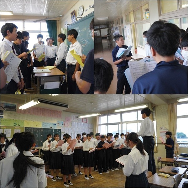 写真は学級合唱の練習中です。去年と比べ、レベルアップした合唱曲。みんなで創りあげましょう♪