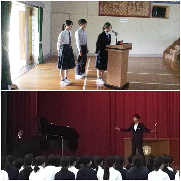 本日は前期終業式でした。式の前に広島平和派遣に参加した生徒たちが、写真を交えた発表をしてくれました。平和の大切さについて今一度考えるきっかけとなる内容でしたね。発表者の3人、お疲れさまでした。