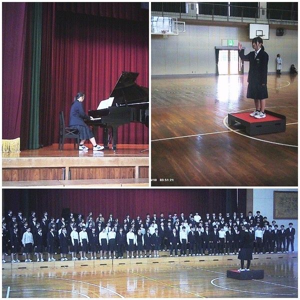 初めて体育館での合唱でしたが、日頃から昼休みなどの時間も活用して練習していることもあってか、朝から声量がしっかりと出ていたように感じました。