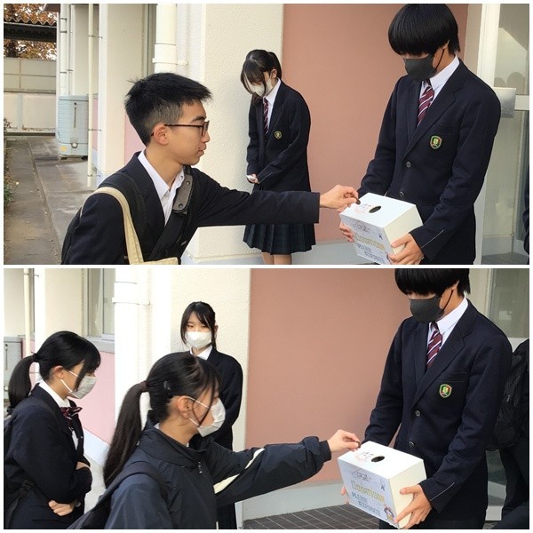 初日ということもあり、寄付金を持ってくるのを忘れてしまった生徒が多くいましたが、袋にお金を入れて持ってきてくれて、寄付をしてくれる生徒もいました。