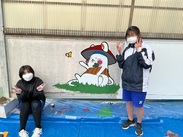 今回の奉仕活動では、例年にない活動がいくつかありましたが、そのうちの1つとして、体育館渡りの外側のペンキ塗りをお願いしました。真っ白なペンキで塗られた壁に加えて、正門から3年生の下駄箱に向かって歩いてくると、北チューくんがみんなをお迎えしてくれます。木曜日に登校するときに、本物を見てみましょう!