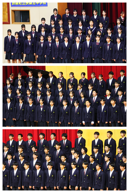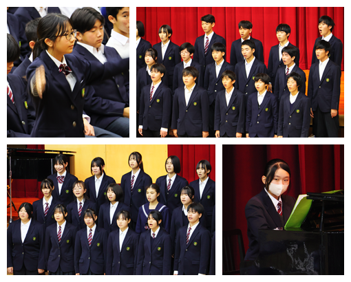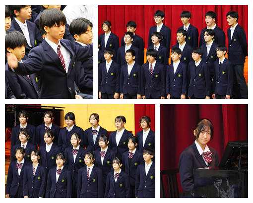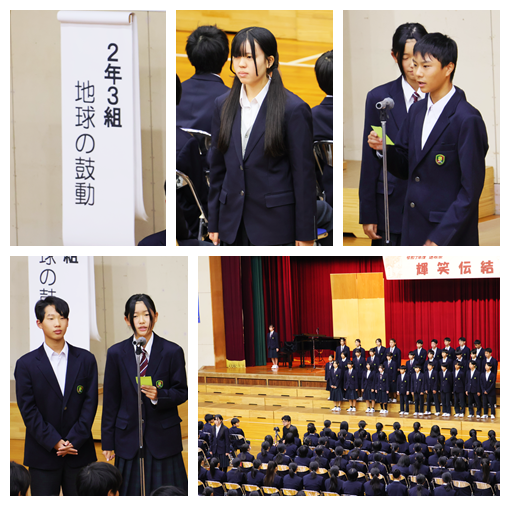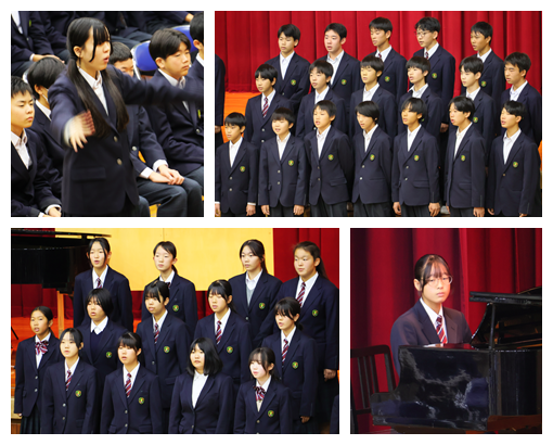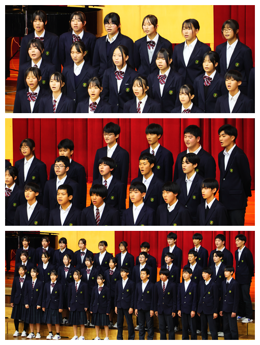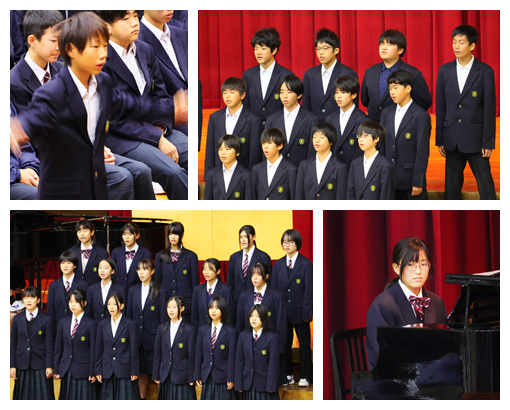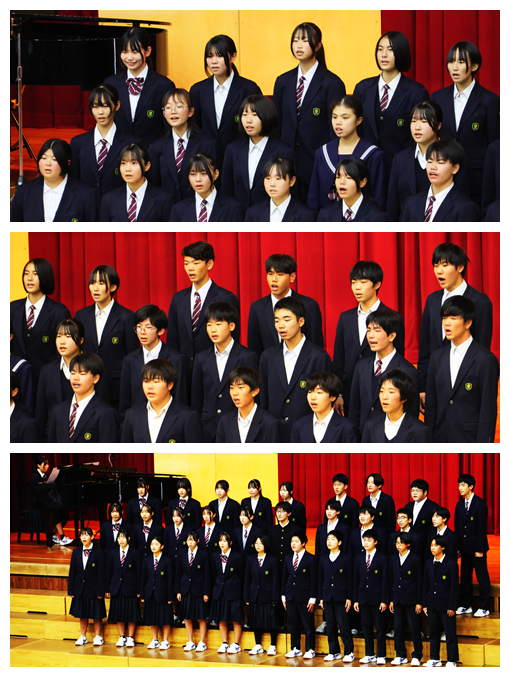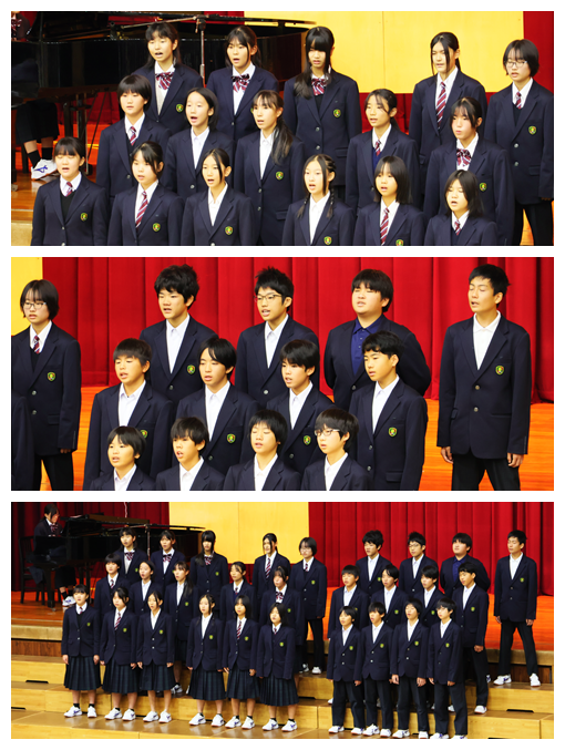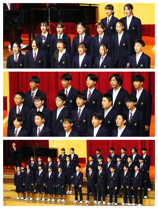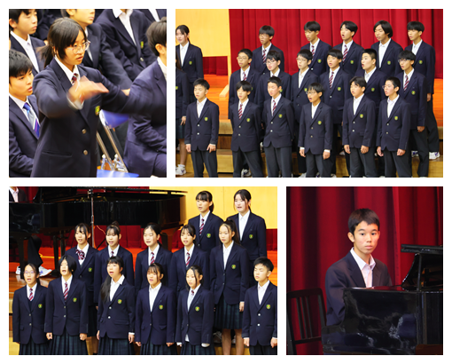 また、演奏の素晴らしさや演出の楽しさだけでなく、4人の出演者の方が、ご自身の進路選択やこれまでの歩みを語ってくださり、今後の進路選択や生き方について、たくさんのヒントをいただきました。さらに、生徒会歌の誕生秘話を聞かせていただき、北中の伝統である生徒会歌の大切さを実感することができました。
