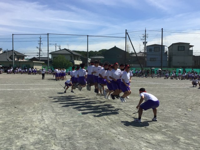 大きな声で数えながら、大縄跳びをしました。練習した成果を発揮して、一生懸命跳ぶことができました。