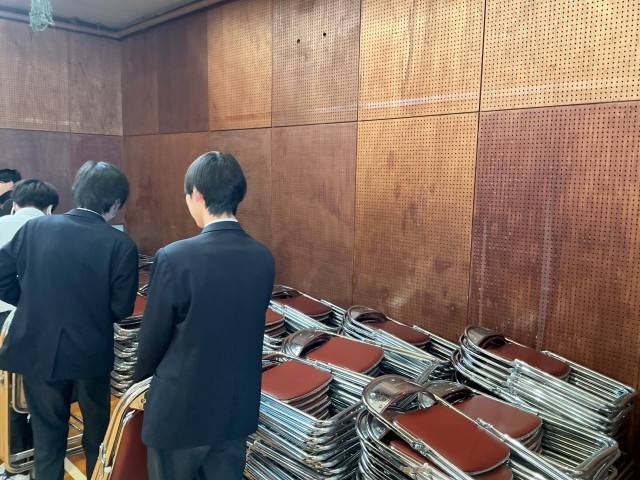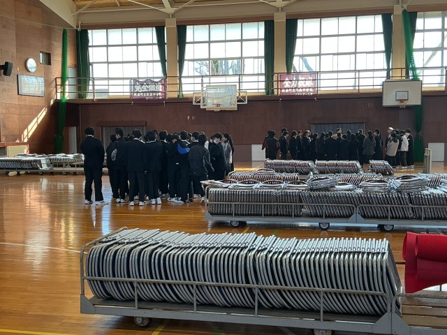 本日の6時間目は、送る会の準備をしました。体育館で椅子ならべをしてから、合唱練習などを行いました。みんなで協力して、会場作りをすることができました。
