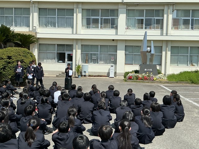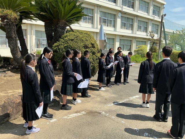 本日、願いの式を行いました。各学級の代表者が中学校生活への想いを語りました。これからある行事への期待や日常生活を整えていきたいという思いが伝わってきました。