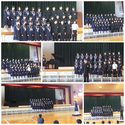 3年生は本日6時間目に中間発表を行いました。他のクラスの合唱を聴き、刺激を受けることができた1時間でした。緊張のためかいつもの歌声が出し切れなかったり、自分たちの課題も見つけることができました。今日得たものを明日からの練習に生かし、もっともっと完成度の高い合唱を創りあげていきましょう!!