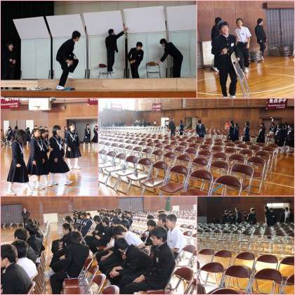 椅子並べに始まり、音響パネルやひな壇の設置など、2時間に渡り全員で協力してしっかり準備できましたね。お疲れ様でした。