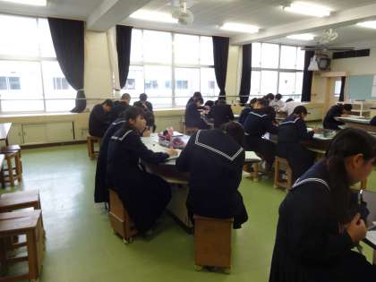 金曜日の総合の時間には,私立高等学校,専修学校の願書の下書きを行いました。三日間,受験する生徒は,たくさん書いて大変だったと思います。月曜日には,清書を行います。先生達で,記入漏れや書き間違えをチェックしましたので,清書では,確認して間違えずに丁寧に書きましょう。