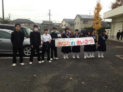 元気な挨拶が響く扶桑中学校を目指して議員が挨拶立ち番を行っています。