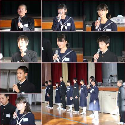 最初に、各学級の学級委員が今年の反省や目標を発表しました。