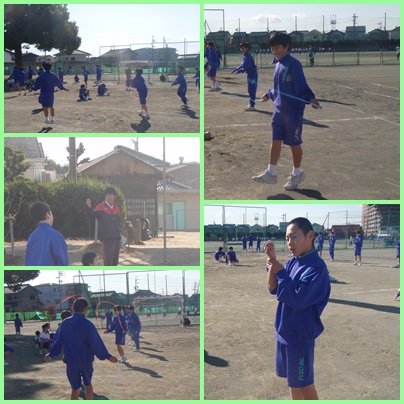 本日の体育は女子は1500m走、男子は縄跳びをして、それぞれが心肺機能を高める取り組みをしていました。