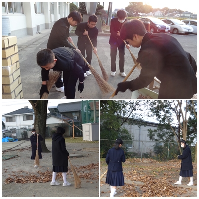 落ち葉掃き 公開日 2016/01/07 更新日 2016/01/07 3年生 今日の朝,ボランティアで15名の生徒が落ち葉掃きに来てくれました。冬休み明けでも,たくさんの生徒が参加してくれました。 いいね(0)