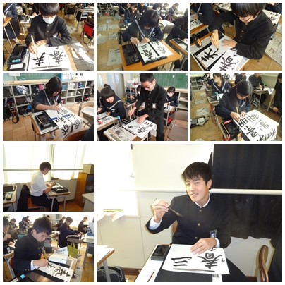 競書会 公開日 2016/01/07 更新日 2016/01/07 3年生 3年生は,「春和景明」です。みんな最後の競書会を気合いを入れて書いていました。 卒業式の日が正しく春和景明のような日になるといいと思います。 いいね(0)