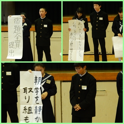 1年生☆集会で学級目標発表