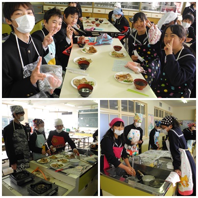1年4組の調理実習 公開日 2016/01/21 更新日 2016/01/21 1年生 今日の家庭科の授業の調理実習で「豚のしょうが焼き」「わかめスープ」を作りました。どの班もおいしそうにできていましたね。 いいね(0)