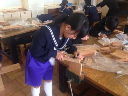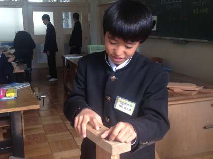6組の技術の授業では、前回ノコギリで切った木材にかんな削りをしています。木の方向を意識しないと上手に出来ません。ザラザラをスベスベにするために、仕上がりのサイズにするためにしっかりかんな削りをしています。