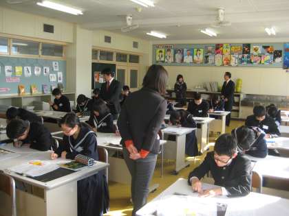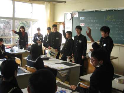 この時間は,扶桑中職員の研修会も兼ねており,多くの先生たちが参観に来ました。
