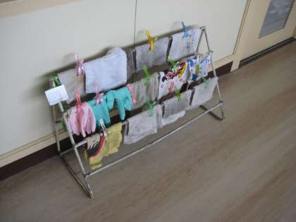 2年生の廊下に置いてある雑巾掛けがきれいに整えられていることが当たり前になってきました。
