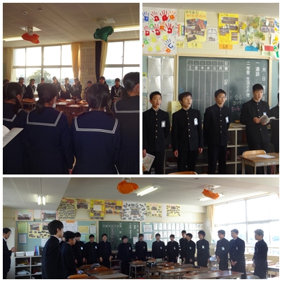 今日は,私立入試1日目です。1時間目は,卒業式・DVD録画に向けての合唱練習を行いました。卒業式まであと21日です。