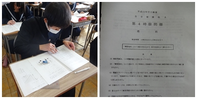 3年生は,まもなく最後の授業を迎えます。理科では,いよいよ11日後に迫った公立一般入試に向けて,平成23年の過去問を解きました。最後の追い込みを頑張りましょう。