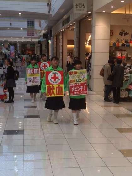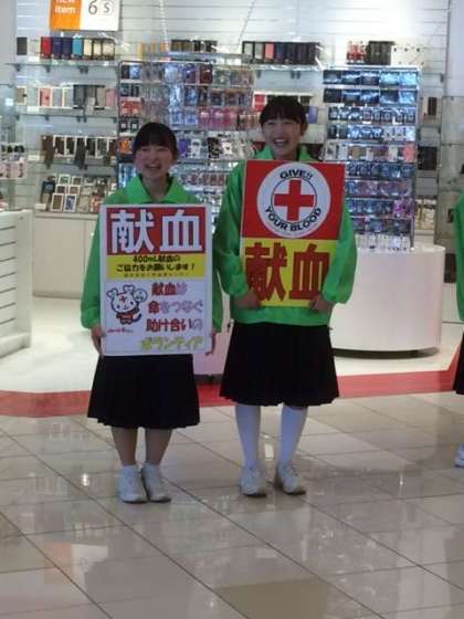 献血ボランティア午後の部が始まりました。ボランティア活動は16:00まで行います。