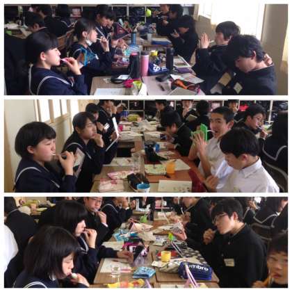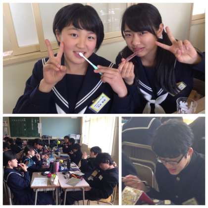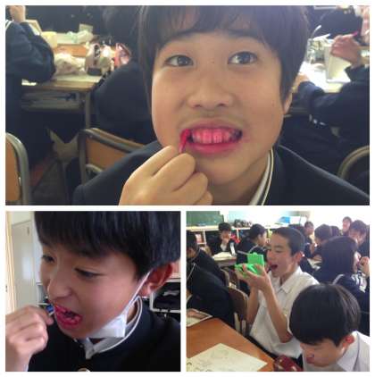 6組で歯磨き指導がありました。歯はどんなところに汚れがたまるのか、実際に液をつけて観察をしてから歯磨きをしました。日頃なんとなくしている歯磨きですが、意識して歯磨きをすることができました。たくさんの歯を健康に保つため、歯茎を健康に保つため、しっかり歯磨きをしていきたいと感想を書いていました。
