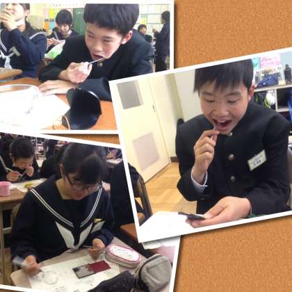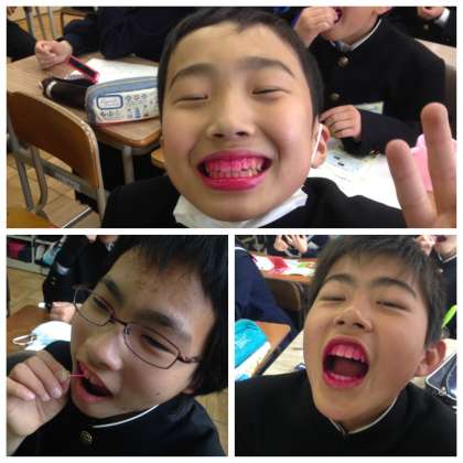 3組でも歯磨き指導を行いました。歯磨きのコツは、どの部分をみがいているのか考えながらみがく。歯の形、並び方にあわせてみがく。軽い力で小刻みに歯ブラシを動かすことだそうです。