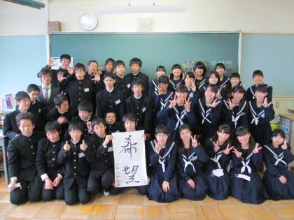 この一年間で「希望」をもって突き進んでいくために,3年2組はクラスみんなで「挑戦する」姿であってほしい,そんな願いを込めて言葉を送りました。