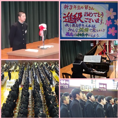 3年生のみなさん,中学校生活を締めくくる1年のスタートです。今日のあなたたちの姿からは多くのやる気が伝わってきました。時間は待ってはくれません。毎日の生活におけるすべての一瞬を一生懸命に楽しんでいきましょう!3年生が意欲的に行動することで,学校に活気を与え,すばらしい扶桑中学校をつくり上げていきましょう!